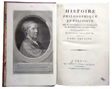 Hans hovedværk er Histoire philosophique et politique des etablissements et du commerce des Européens dans les deux Indes (1770 og flere senere udgaver), hvor han bl.a. havde Denis Diderot og Saint Lambert til medarbejdere ved de senere væsentligt udvidede udgivne 2. (1774) og især 3. udgaver (1780).[1] De voldsomme angreb på slavehandel, inkvisition og al religiøs og politisk tvang skaffede bogen en vældig læsekreds, selv efter dens forbud da den fortsat blev optrykt udenfor Frankrig og smuglet ind over grænsen og solgt. Historikeren Robert Darnton har påvist at værket var blandt de 10 mest solgte illegale bøger i Frankrig før revolutionen.[2]. Især 3. udgaven hvor Diderot havde tilføjet over 700 siders tekst,[3] indeholdt radikale og revolutionære idéer. I mellemtiden var den Amerikanske uafhængighedskrig brudt ud, og Diderot og medarbejdere fik også tilføjet nye kapitler omhandlende denne konflikt. Idéhistorikeren Jonathan I. Israel kalder værket for oplysningstidens mest ødelæggende enkeltudfald mod datidens eksisterende orden.[4]
