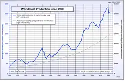 Omkring halvdelen af alt guld i verden stammer fra Sydafrika, hvor man har udvundet det siden 1880'erne. Anslået 145.000 tons ved udgangen af 2001. I 1970 stod Sydafrika bag 79 % af verdensproduktionen med omkring 1.000 tons. I 2007 var landets produktion faldet til blot 272 tons, primært på grund af stigende tekniske vanskeligheder ved udvindingen, skiftende økonomiske forhold og stramninger i sikkerhedsreglerne for minedrift. Netop dét år overhalede Kina Sydafrika med en produktion på 276 tons. Det var første gang siden 1905, at Sydafrika måtte se sig overgået på dette felt.