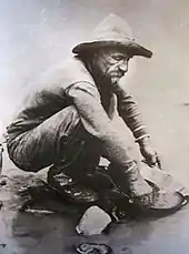 Såvel under guldfeberen som i de efterfølgende årtier arbejdede guldgravere også med at udvinde guld direkte fra den guldholdige klippe – som i reglen var af kvarts. Det skete ved at grave og sprænge klippen for at følge årer af guldholdig kvarts.[78] I 1851 var udvinding af guld fra kvarts blevet den største erhvervsgren i Coloma.[79] Når den guldholdige klippe kom op fra undergrunden blev stenene knust og guldet udvundet ved hjælp af vand eller separeret, hvilket som regel foregik med arsenik eller kviksølv (yderligere en kilde til forurening).[80] Til sidst blev udvinding af guld fra guldholdige klipper den største kilde til guld i guldfelterne.[71][81]