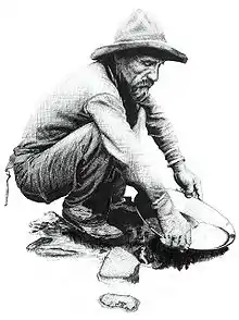 En af de mere kendte metoder er guldvaskning, der primært er en manuel teknik. Brede, lave fade fyldes med sand og grus, der kan indeholde guld. Vand tilføjes, og fadet rystes. Da guld er tungere end sten, synker det hurtigere til bunden af fadet, mens grus og småsten skylles bort. Metoden kendes fra westernfilm.