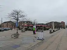 Der ligger også en café, en blomsterforretning og en autoservice. Der er parkering under pladsen. Desuden er der i de gamle portnerboliger til kasernen indrettet en sushi- og en bagelrestaurant. De to portnerboliger er daterede 1898 og 1896. I den ene var der vagtlokale, i den anden arrest.