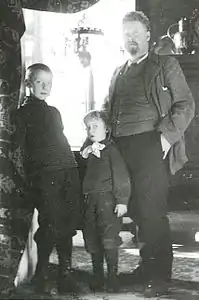 ![]() Gustav Wentzel med sønnerne Jørgen og Bjørn – Hasselbakken i Asker ca. 1900 | |