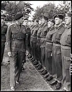 ![]() Generalløjtnant Guy Simonds inspicerer 2. canadiske korps i Meppen i Tyskland,