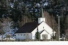 Kirken er en korskirke fra 1815med 300 siddepladser. Klokketårnet har to klokker, som er beholdt i manuel drift (ikke mekaniseret).