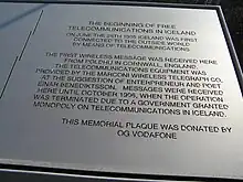 The first wireless message was received here from Poldhu in Cornwall, England. The telecommunications equipment was provided by the Marconi Wireless Telegraph Co, at the suggestion of enterpreneur and poet Einar Benediktsson. Messages were received here until October 1906, when the operation was terminated due to a government granted monopoly on telecommunications in Iceland.