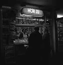 ![]() Reklameskilt for Hörzu ved kiosk i Wuppertal i 1961. | |