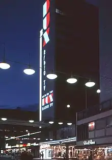 I begyndelsen af 1960 fik Dux Telefon och Radiofabriks AB byggetilladelse til et stort reklameskilt på gavlen af højhuset mod Sergelgatan. Skiltet blev designet af højhusets arkitekt David Helldén og Philips Neon lavede det. Det indeholdt i alt over en kilometer neonrør i røde, hvide og blå farver og var dengang Europas største lysreklame.[10] Den 24. august 1960 blev skiltet tændt af Stockholms Mälardrottning (datidens Frøken Stockholm i en skønhedskonkurrence).