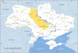 Regionens hovedbyer omfatter Tjerkasy, Kropyvnytskyj, Bila Tserkva, Zjytomyr og Oleksandrija .