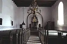 Kirken er præget af tilhørsforhold til Stårupgård.
