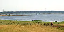 Den første 400 kV-forbindelse Kassø-Tjele krydser Bølling Sø. Foto fra 2006.
