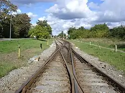 Tølløsebanen th., veteranbanen til Gørlev tv. med remisen i baggrunden | |||||