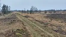 Et vandhul ved stien opstået ved tørvegravning