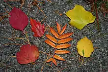 Det sidste blad har fået sin kulør ved en blanding af de to farvestofgrupper:
