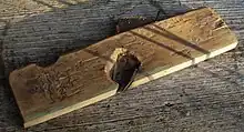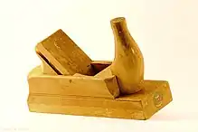 ![]() Tandhøvl / Zieklingehøvl - bemærk jernets stejle vinkel, og høvlens horn. |