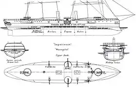 Den engelske panserkrydser Imperieuse var konstrueret med kraftig skelen til det franske slagskib Marceau. Der var valgt et tilsvarende arrangement med fire kraftige kanoner i hvert sit drejetårn. Skibet var meget kraftigt armeret i forhold til sin størrelse, og undervejs i konstruktionsprocessen løb der endnu mere ekstra vægt på, og det endte med at ligge så lavt i vandet, at sidepanseret lå under vandlinjen, hvilket gjorde det nærmest værdiløst. Imperieuse var det femte af seks skibe i Royal Navy, med dette navn. Den første var en fransk fregat, erobret i 1793, og englænderne lod den beholde navnet Imperieuse ("bydende nødvendigt"), sikkert fordi det lå tæt på det engelske "imperative", der har samme betydning.