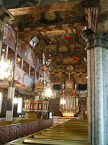 Kirken er en trækirke, der fik sit nuværende udseende 1723. Kirkens arkitektur påminder om en katedrals, men er opført udelukkende i træ. Den har formen som en basilika, med et højt midterskib og to lavere sideskibe. Kirken blev malet 1741–43 af to malere fra Jönköping, Johan Kinnerus og Johan Christian Peterson. Malerierne illustrerer Luthers katekismus' sammendrag af den kristne lære.