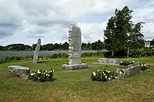 Den 8. juli 2009 blev der i parken rejst en mindesten i anledning af 50-året for katastrofen på Haderslev Dam, hvor en turbåd forulykkede, og 57 mennesker omkom. Mindestenen er placeret på halvøen vest for omkørselsvejen, omkring 800 meter øst for det sted, hvor katastrofen skete. Der er tale om en 3,20 meter høj granitsten, der er omkranset af tre granitbænke og en del af en tre meter høj skibsstævn i granit, der for eftertiden skal markere, at den sønderjyske domkirkeby i 1959 blev ramt af en tragedie. Teksten på østsiden af stenen er citeret nedenfor og på vestsiden er de 57 navne på katastrofens dødsofre anført.