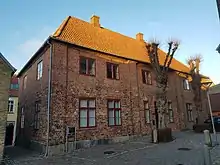 - 1569 (?) Første bygning på kirkepladsen (Smedegade)