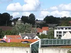 | Som en vifteformet buket med kønne afstemte farver, omgivet af grønne bøge og med den klare å slynget som et sølvrent bånd, har vi om sommeren Hadsten liggende foran os, når vi fra bakkerne mod syd nærmer os byen... | ||
