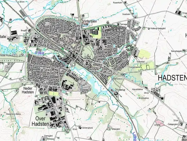 Selvom Hadsten Stationsby blev opført på landsbyen Vinterslevs marker, og byens navn alligevel blev Hadsten, skyldes at postvæsenet frygtede at byens navn ville komme for tæt op ad Vinderslev ved Kjellerup, og derfor blev det nabosognets navn blev indstillet og godkendt som navn.[8]