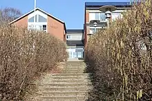 Højskolen blev grundlagt på loftetagen klods op ad stationen, indtil den i 1897 flyttede til den nuværende placering i nyopførte bygninger. Disse bygninger er i dag nedrevet til fordel for det nuværende bygningskompleks, der blev opført i 1985.
