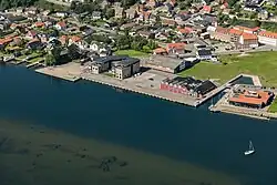 ![]() Hadsund Havn set fra syd i 2019. | |