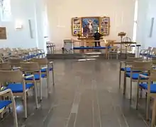 Kirkens indre var oprindeligt præget af rødstensmure. I 1967 blev den vestre korsarm forlænget med to meter, og der blev foretaget en omfattende renovering inde i kirken.[1]
