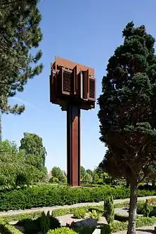 Over indgangsdøren hænger der et kunstværk skænket af guldsmed Bent Exner den 27. maj 1977. Værket består af 30 konkave og 30 konvekse lueforgyldte kobberplader, der er samlet i en firkant, der står på spidsen.