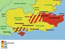 Angelsaksiske bosættelser i det sydøstlige England ca. 572.