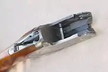 Lukkemekanismen virker gennem toplukkenøglen, der sidder øverst på baskylen. Når toplukkenøglen skubbes til siden frigøres låsen og bøssen kan knækkes (heraf navnet knæklås). Når bøssen åbnes, spændes hanerne (slagstykkerne). Når haglbøssen lukkes igen, svinger toplukkenøglen på plads pga. en fjeder og låsemekanismen lukker løbene fast til baskylen.