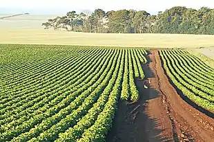 Hakfrugter (eller hakkefrugter[1]) er en landbrugsbetegnelse for afgrøder, der dyrkes i rækker med så stor indbyrdes afstand, at man kan rense og bearbejde afgrøden mellem rækkerne i vækstperioden. Dette foregik tidligere udelukkende ved hakning, deraf navnet. Til hakfrugter regnes først og fremmest alle de såkaldte rodfrugter, samt kartofler, men også hestebønner, kommen, tobak og de fleste gartneriske afgrøder, der kan dyrkes i marken. Hvis kornafgrøder sås med så stor afstand, at der kan hakkes mellem rækkerne, kan man også på sin vis regne dem for hakfrugter, selv om behandlingen ikke kan blive så intensiv, som den må være ved de førstnævnte afgrøder.
