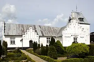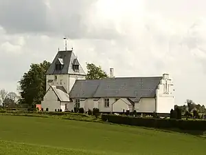 Halk kirke, tidligt indviet til Sankt Jakob, er rejst af granitkvadre og munkesten og fremstår som en blytækket, hvidkalket, romansk kirkebygning med tårn ved korets østmur og omgivet af kirkegård, indhegnet med kampestensdiger, bortset fra vestsiden, der støder op til en lille skov.