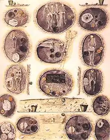 Akvarel af Johann G. Ramsauer (1795-1874) , som dokumenterer en af hans udgravninger ved Hallstatt.