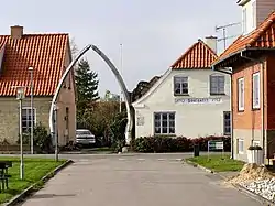 - Hvalkæben, kaldet Hvalgabet: Denne portal er et af byens vartegn (udover Hals Barre Fyr, Bent Exners skulptur "Smykket" og Hals Kirke). Oprindeligt var der tale af kæberne af en blåhval (Boryvalus) fanget i Ishavet i 1868. De blev i 1955 erstattet af en ny, da den forrige, lidt mindre, blev påkørt af en lastbil i 1953. Hvalkæberne fra 1955 er fra og med 2017 udskiftet med glasfiberafstøbninger, og de gamle er sendt til opbevaring på Danmarks naturhistoriske museum.[14]