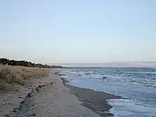 Hanøbugten set fra Yngsjö mod kysten ved Åhus Slot i nord