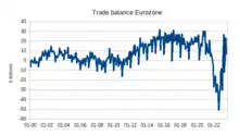 Graf over Eurozonens handelsbalance fra 2000-22.