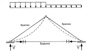 Statisk belastning af tag med hanebånd (Kehlbalken = Hanebånd)