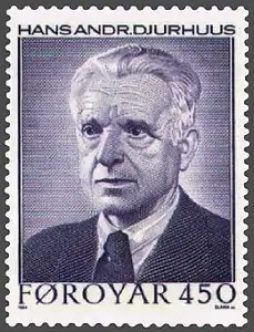 Hans. A. Djurhuus. Færøsk frimærke fra 1984.
