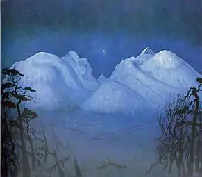 Nasjonalgalleriets store billede (h x b: 160.4 x 180 cm, olie på lærred) Vinternatt i Rondane / Vinternatt i fjellene blev 1995 valgt til Norges nationalmaleri ved en lytterundersøgelse på NRK[4][5] |