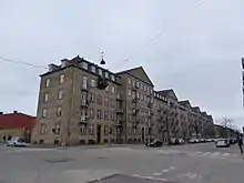 - Nr. 8: En stor åben karré tegnet af arkitekten Arthur Wittmaack og Vilhelm Hvalsøe stod færdig i 1936. Funktionalistisk byggeri i gule sten og fem etager med altaner i festlige farver. Det var de samme arkitekter, der tegnede Nora Bio på Nørrebrogade.