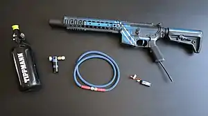 En anden mulighed er HPA-baserede våben, der bruger et højt tryk lig trykket i en dykkertank. Der findes både mekaniske og elektroniske HPA våben. Mekaniske HPA våben består af forskellige komponenter, der via aftrækkeren tillader luften at sive gennem våbnet til affyring af kuglen. Alternativt bruges våben med en HPA-engine eller cylinder, der via aftrækkeren og en lille computer lukker luft ud.