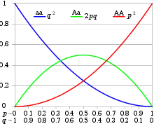 For tilfældet med to alleler A og a hhv. med frekvenserne p og q (p+q=1), forventes følgende frekvenser:[1]