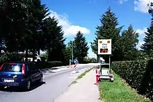 I marts 1974 vedtog Folketinget en ændring af færdselsloven, der indføre hastighedsbegrænsninger på 60 km/t i tættere bebygget område, 90 km/t uden for tættere bebygget område og 110 km/t på motorvej. Der var foreløbig tale om en prøveordning, da udviklingen i antallet af ulykker ved gennemførelse af disse begrænsninger skulle undersøges nærmere. Det blev samtidig tilkendegivet, at tættere bebygget område ville blive markeret med tavler. Dermed indførtes i 1974 også de hvide byskilte, der markerer byzone og en bestemt hastighed.[7]