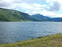 Haukedalen kirke ligger ved Gjerland ved østenden af Haukedalsvatnet.