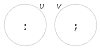 Antag at X er et topologisk rum. Lad x og y være punkter i X. Punkterne siges at være adskilt af omegne, hvis der eksisterer en omegn U om x og en omegn V om y, så U og v er disjunkte (U ∩ V = ). X kaldes et Hausdorffrum (eller blot Hausdorff), hvis to vilkårlige forskellige punkter i X kan adskilles af omegne. Denne betingelse er det tredje separationsaksiom, efter T0 og T1, hvorfor Hausdorffrum også kaldes T2-rum.
