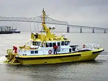 En svensk lodsbåd i Ystad havn. TJB 772 Sjöfartsverket.