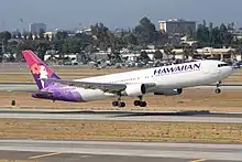 Et Boeing 767 fra Hawaiian Airlines tar af.