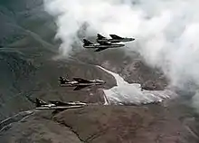 På grund af budgetproblemer efter krigen i 1971 blev indkøb af nye flytyper aflyst, og den lokalt udviklede HAL HF-24 Marut opfyldte ikke forhåbningerne. Som følge valgte IAF at beholde de aldrende Hunter jagere og English Electric Canberra bombere.[90] Efter at have overvejet adskillige udenlandske jagerfly til at erstatte Hunter, endte regeringen i oktober 1978 med at indkøbe 200 stk. SEPECAT Jaguar, hvoraf de fleste skulle samles lokalt.[91] I 1996 blev den sidste Hunter taget ud af tjeneste, og eskadrillen overgik til at flyve Sukhoj Su-30MKI.[92]