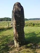 Ásfríðr gerði kuml þessi, dóttir Óðinkárs, ept Sigtrygg konung, son sinn ok Gnúpu. Gormr reist rúnar.