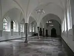 I 1904 tilføjede Storck et trappehus ved det nordøstlige hjørne, hvor han ved renoveringen havde fjernet kapellerne, og andet stokværk blev indrettet til brug for et udvalg, der behandlede folkekirkens forfatningsmæssige forhold. I 1918 flyttede menighedslokalerne op på andet stokværk, og folkebiblioteket flyttede ind i søjlesalen. De dækkede flisegulvet med de tilbageværende gravsten med et plankegulv. Der var bibliotek i salen frem til 1957. I dag bruges salen som udstillingslokale, men hvornår denne praksis begyndte vides ikke præcist, dog er det mere end 30 år siden.